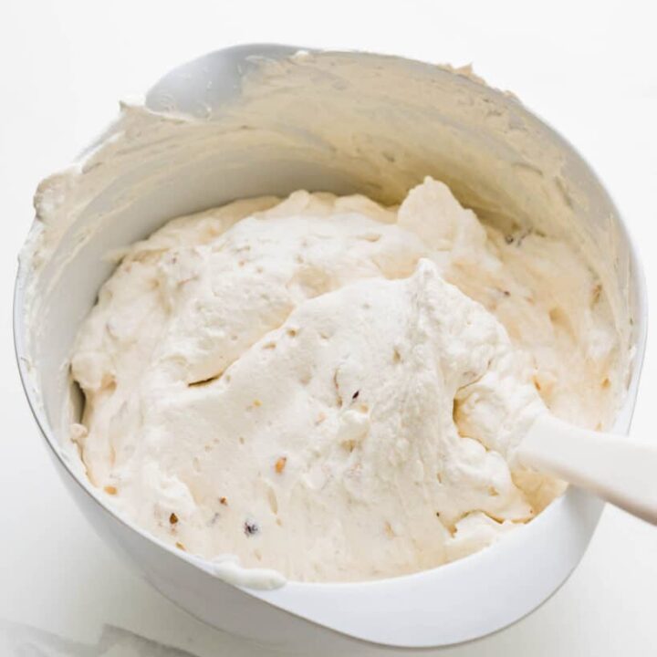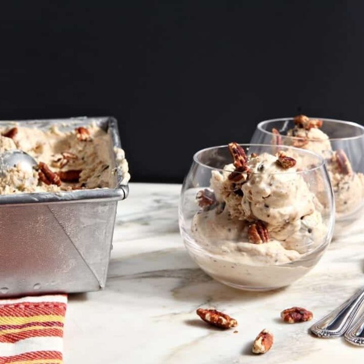 Add in pecans and this no-churn peanut butter ice cream with chocolate chips takes that magical marriage of flavors to give you a delightful treat.