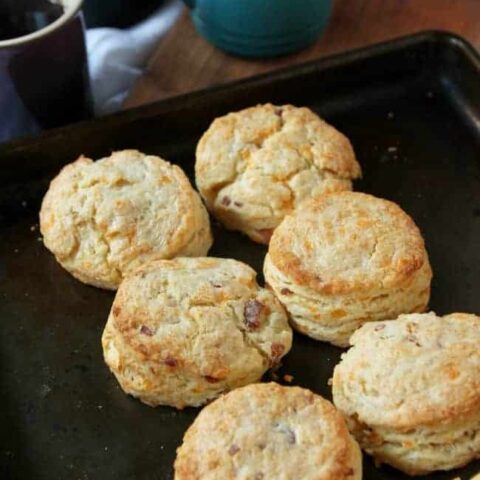 These savory scones are a great alternative or addition to sweet scones and muffins. Made with cheddar cheese and bacon, every bite is perfection. Bet you can't make just one!