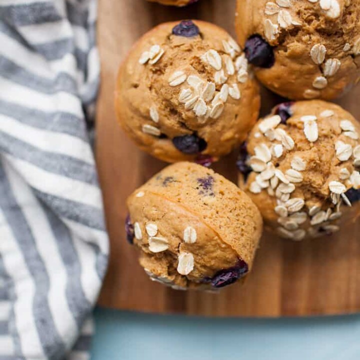 These Blueberry Oatmeal Muffins are golden, hearty, moist and delicious! They're packed full of blueberries, sweetened with coconut sugar and made with soaked oats for extra flavor and texture. You won't believe how easy and delicious these blueberry muffins are!