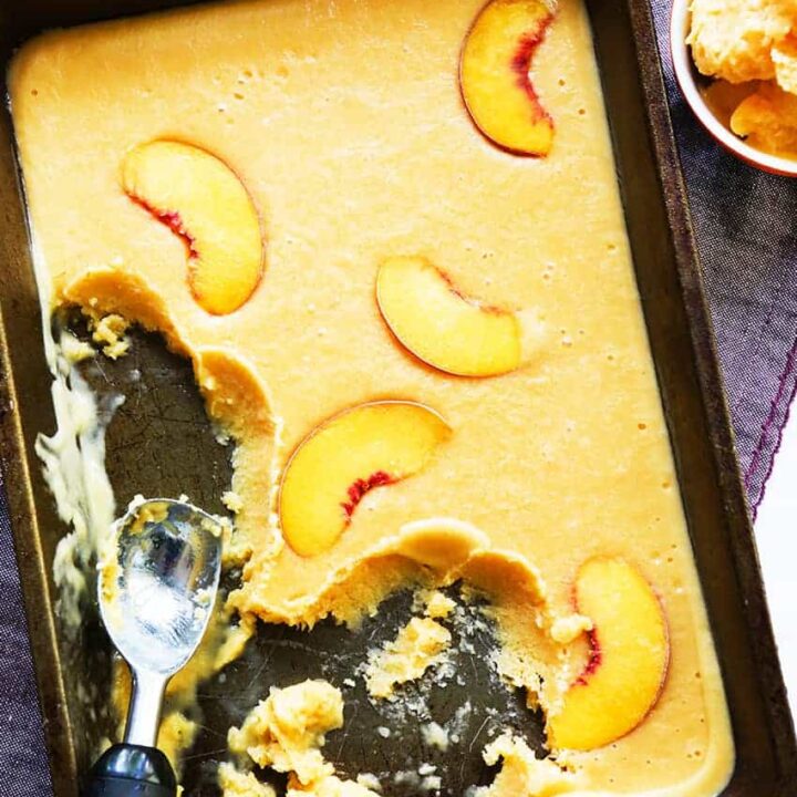 Peaches in the summer? Yes, please! With only three ingredients, this Frozen Peach Yogurt (FroYo) is too simple to not have in your summer recipe carousel.