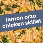 This lemon orzo chicken recipe makes a go-to one pan dinner for busy weeknights. Tender, savory chicken, creamy pasta, spinach and lemon come together in a single skillet for a delicious meal without creating a sink full of dishes.