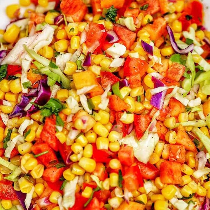 This Mexican street corn salad without mayo is such a delicious side dish that has been lightened up a little. It goes perfectly with grilled shrimp.