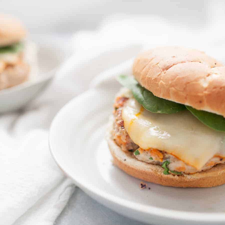 Homemade burgers are so easy to make and the taste can't be beat! This quick recipe is perfect for dinner on the table in under 30 minutes. These homemade sweet potato turkey burgers are made with spinach, sweet potatoes, ground turkey, and spices and topped with cheese on an onion bun. It's such a simple burger but packed full of flavor!