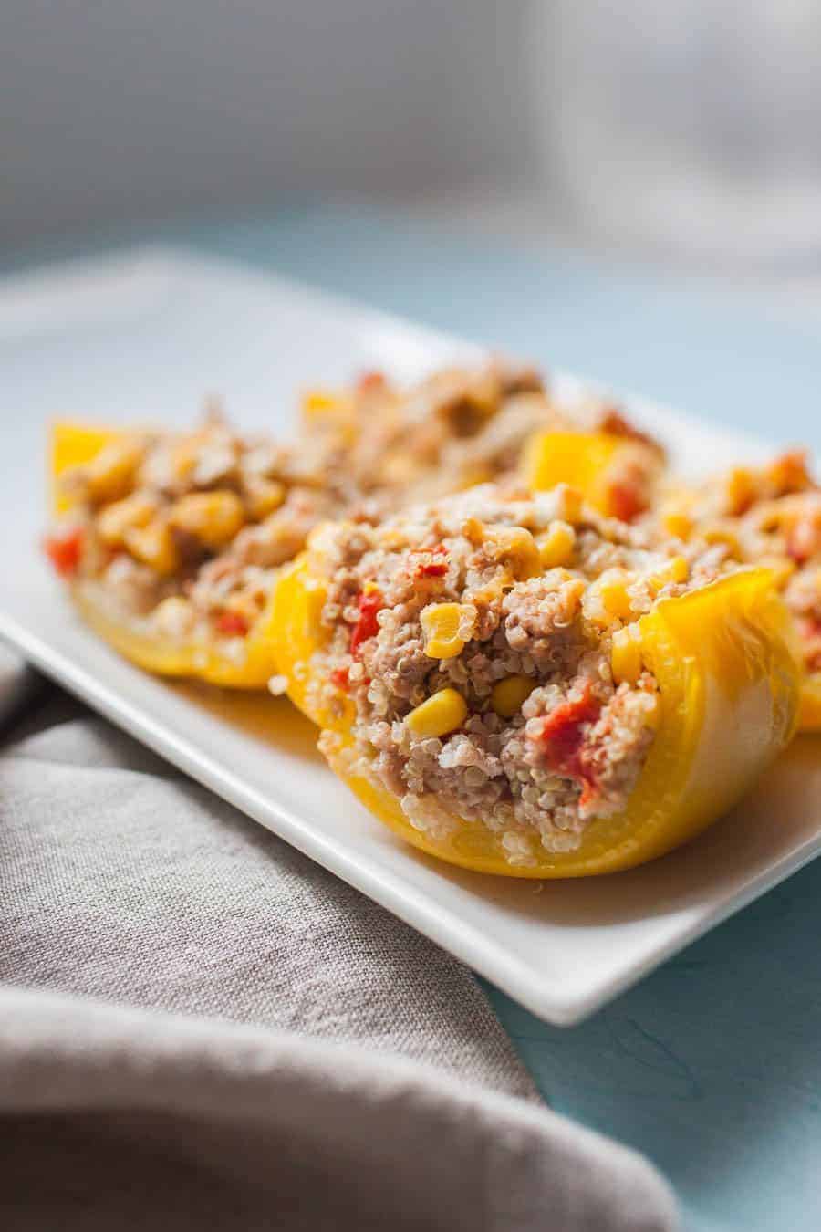 This Quinoa Turkey Stuffed Peppers recipe is a staple my whole family loves! This recipe became a favorite for us while we were living with my parents because it's easy to multiply and customize for people with very different palates and taste preferences.